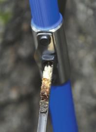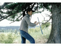 1、取芯。(用钻取仪器生长锥打进树干1.3米处,取出树芯。)
